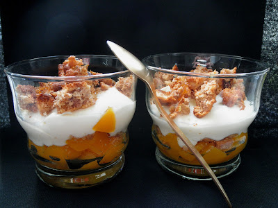 Copas de melocotón con mascarpone y yogur